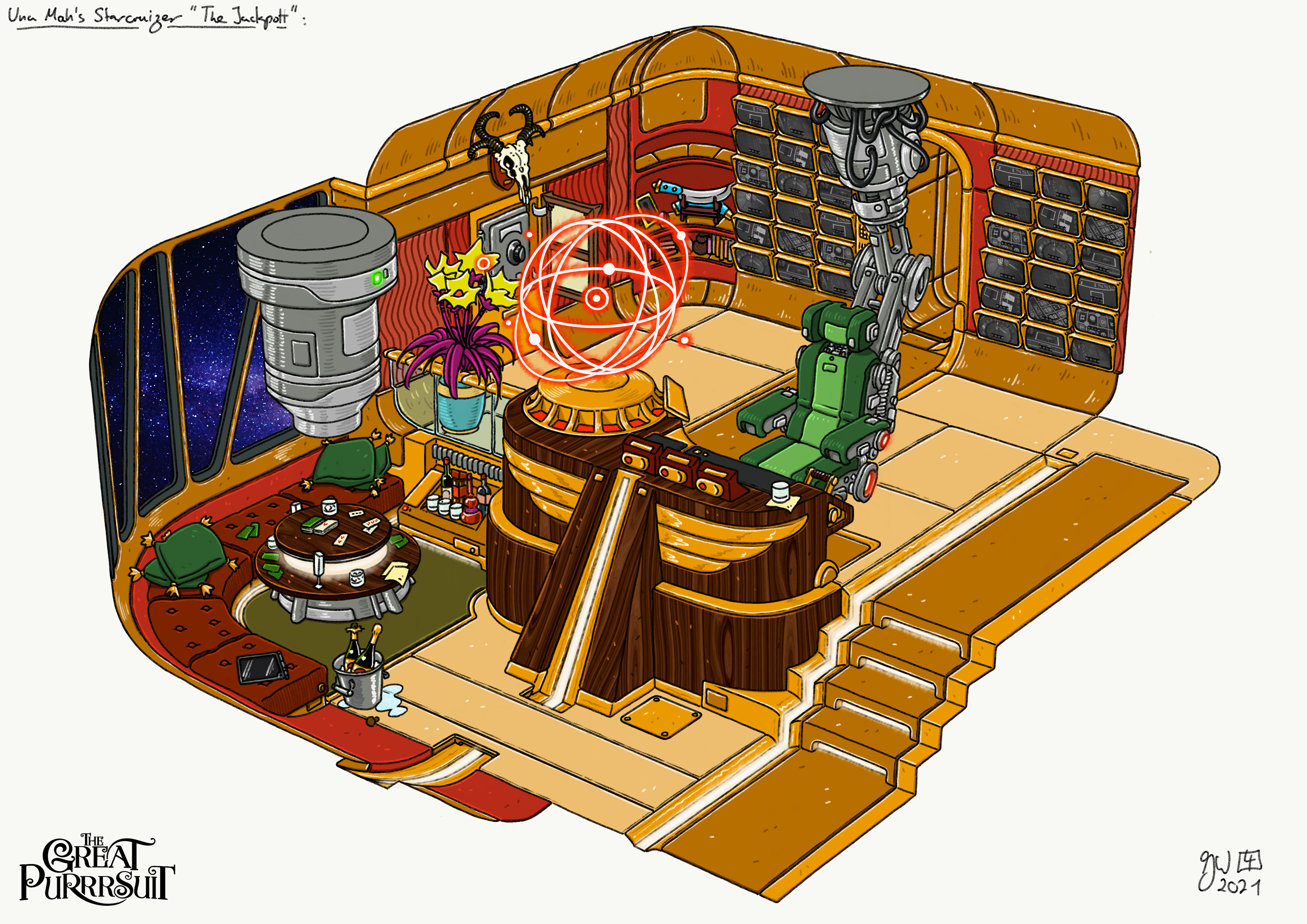 At the start of 2021 I was approached by the stage actress Stella Roberts to assist her in her directorial ambitions for an episodic sci-fi online series named "The Great Purrrsuit". My role was to be the creation of the visual style of the series. I was tasked with working on the concept art of the entire series. Everything from the character, vehicle, environmental and set designs to the storyboards for animations and eventual animatics.